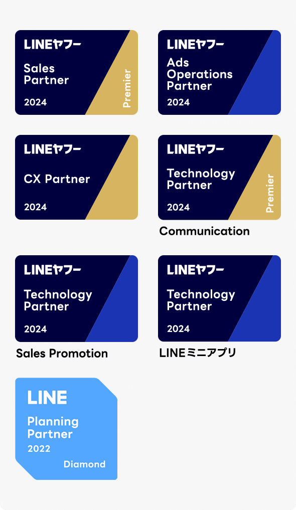 - ※「LINEヤフー Partner Program」は、LINEおよびYahoo! JAPANを活用したマーケティング・CX 課題の解決をより積極的に推進することを目的に導入された、「Sales Partner」「Technology Partner」「Network Partner」「CX Partner」の各カテゴリーにおいて、広告代理店やサービスデベロッパーを認定するプログラムです。
